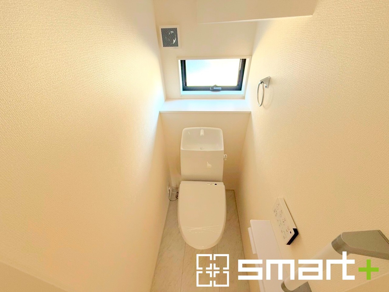 1号棟 ~ウォシュレット付トイレ~ ・小窓から光が差し込む明るいトイレ。使用後や掃除の際には換気もしやすく快適ですね。 ・清潔感あるウォシュレット付です。