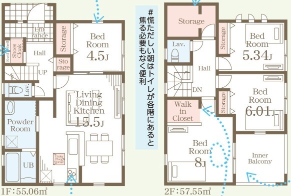 2号棟 ~収納豊富なプランを採用~ ・ウォークインクローゼット、シューズインクロークなど収納豊富なプランを採用。 ・今のお住まいと収納力をぜひ比較してみてください。