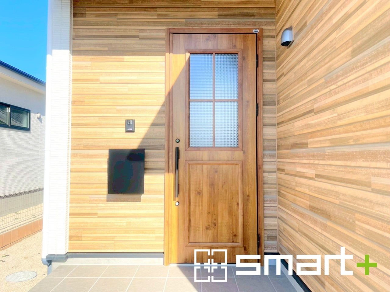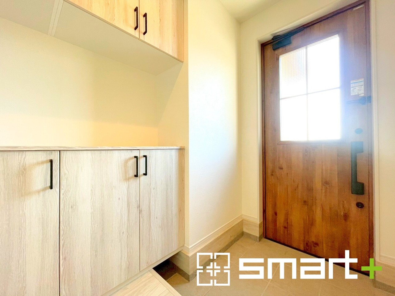 ~穏やかな陽が入る玄関~ ・玄関ドアのガラス部分からも穏やかな陽が入り、明るい玄関に。 ・木のぬくもりを感じる木目調の玄関ドアでお住まいの「顔」の印象が大きく変わります。