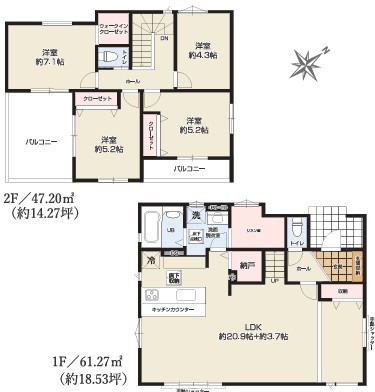 | 間取 | 4LDK + WIC、納戸、間取り変更可 (LDK24.6帖、洋室7.1帖、洋室5.2帖、洋室5.2帖、洋室4.3帖) | ||