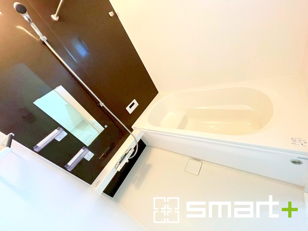 4号棟 ~浴室乾燥機付きの浴室~ ・浴室には乾燥機が付いているので雨の日でも洗濯物を干すことが可能です。 ・水はけの良い床材など機能面も充実。マイクロバルなどオプションもご相談くださいませ。
