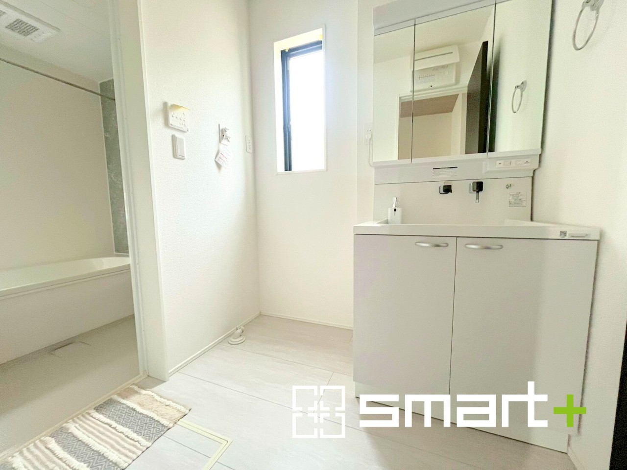 4号棟 ~人気の三面鏡を採用~ ・洗面台は三面鏡仕様なので鏡の角度を変える事で頭の後ろの方までご確認可能です。 ・鏡の裏が収納になっておりますので、洗面台周りもスッキリと片付きます。