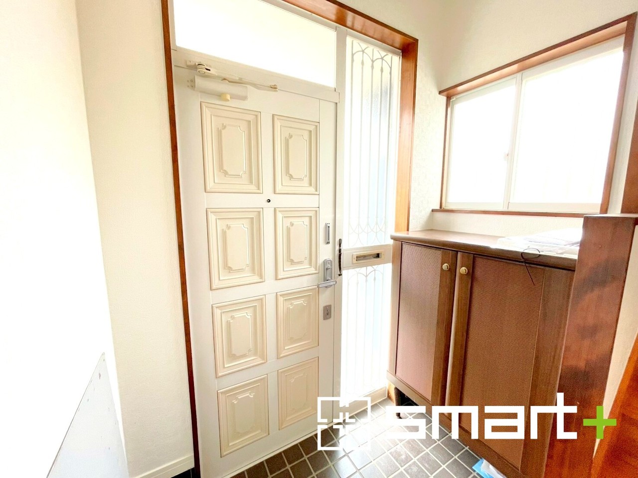 ~穏やかな陽の入る玄関~ ・玄関ドアのガラス部分に加えてシューズボックスの間に窓を設ける事で穏やかな陽の入る玄関に。 ・ご家族やご来客を明るい空間で出迎えてくれます。