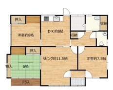 | 間取 | 3LDK (LDK19.5帖、和室6帖、洋室7.5帖、洋室6帖) | ||