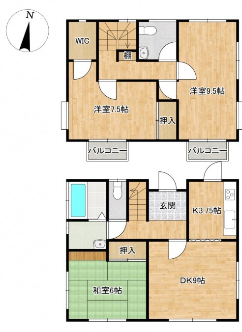 | 間取 | 3DK (DK9帖、K3.7帖、和室6帖、洋室9.5帖、洋室7.5帖) | ||