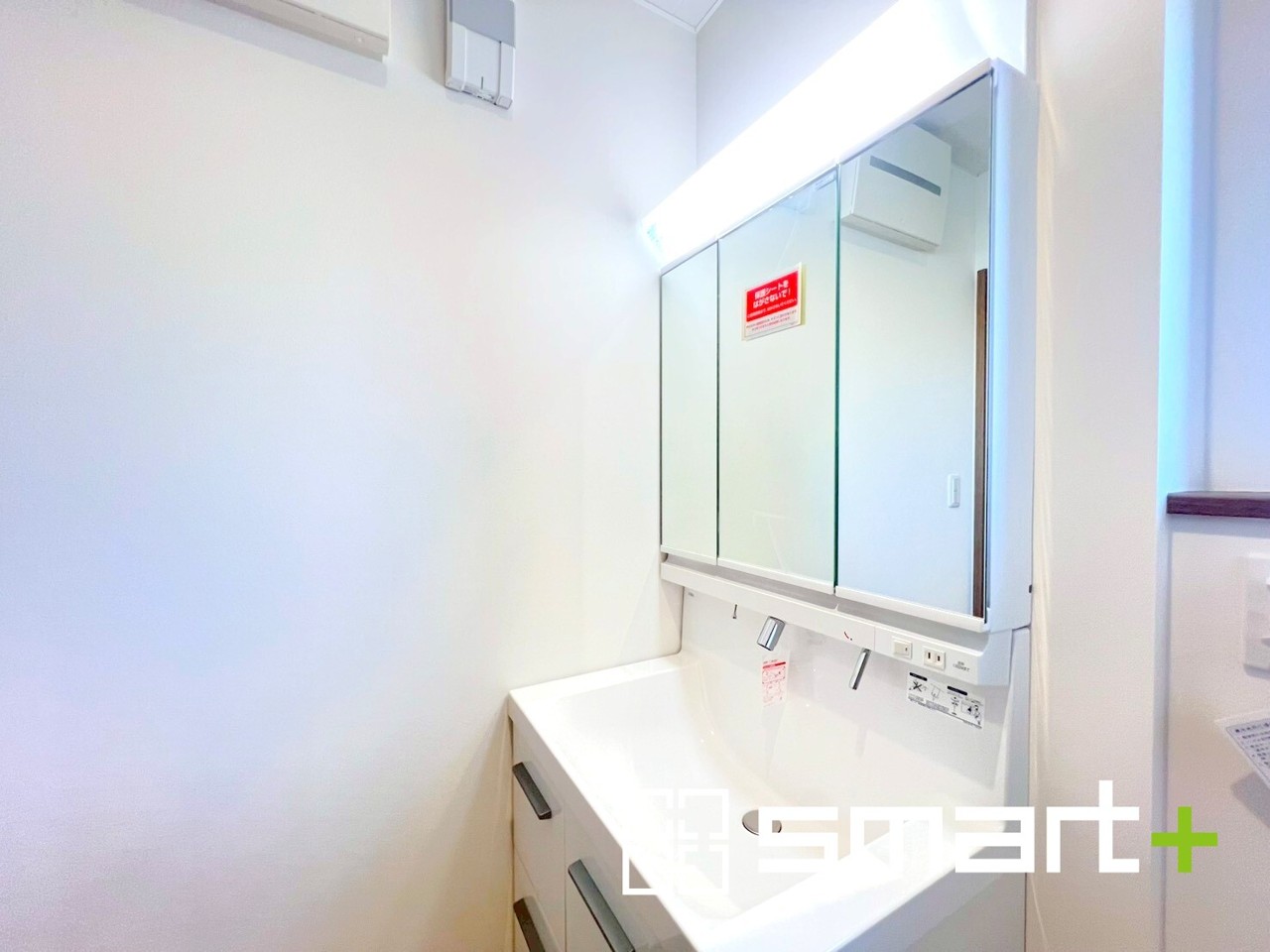 ~人気の三面鏡を採用~ ・洗面台は三面鏡仕様なので鏡の角度を変える事で頭の後ろの方までご確認可能です。 ・鏡の裏が収納になっておりますので、洗面台周りもスッキリと片付きます。
