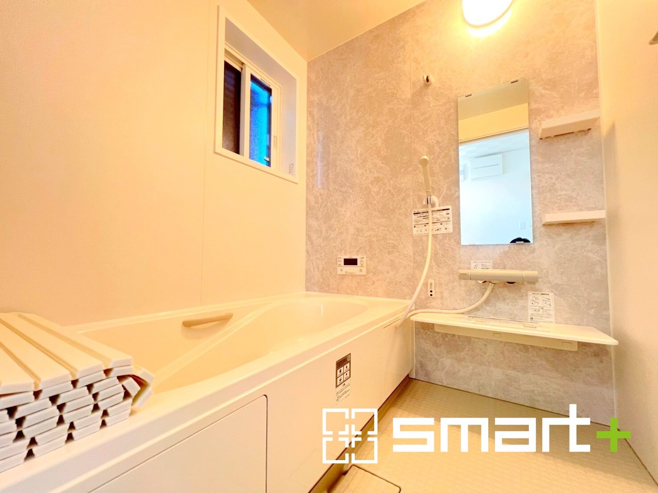 ~浴室乾燥機付きの浴室~ ・浴室には乾燥機が付いているので雨の日でも洗濯物を干すことが可能です。 ・水はけの良い床材など機能面も充実。マイクロバルなどオプションもご相談くださいませ。