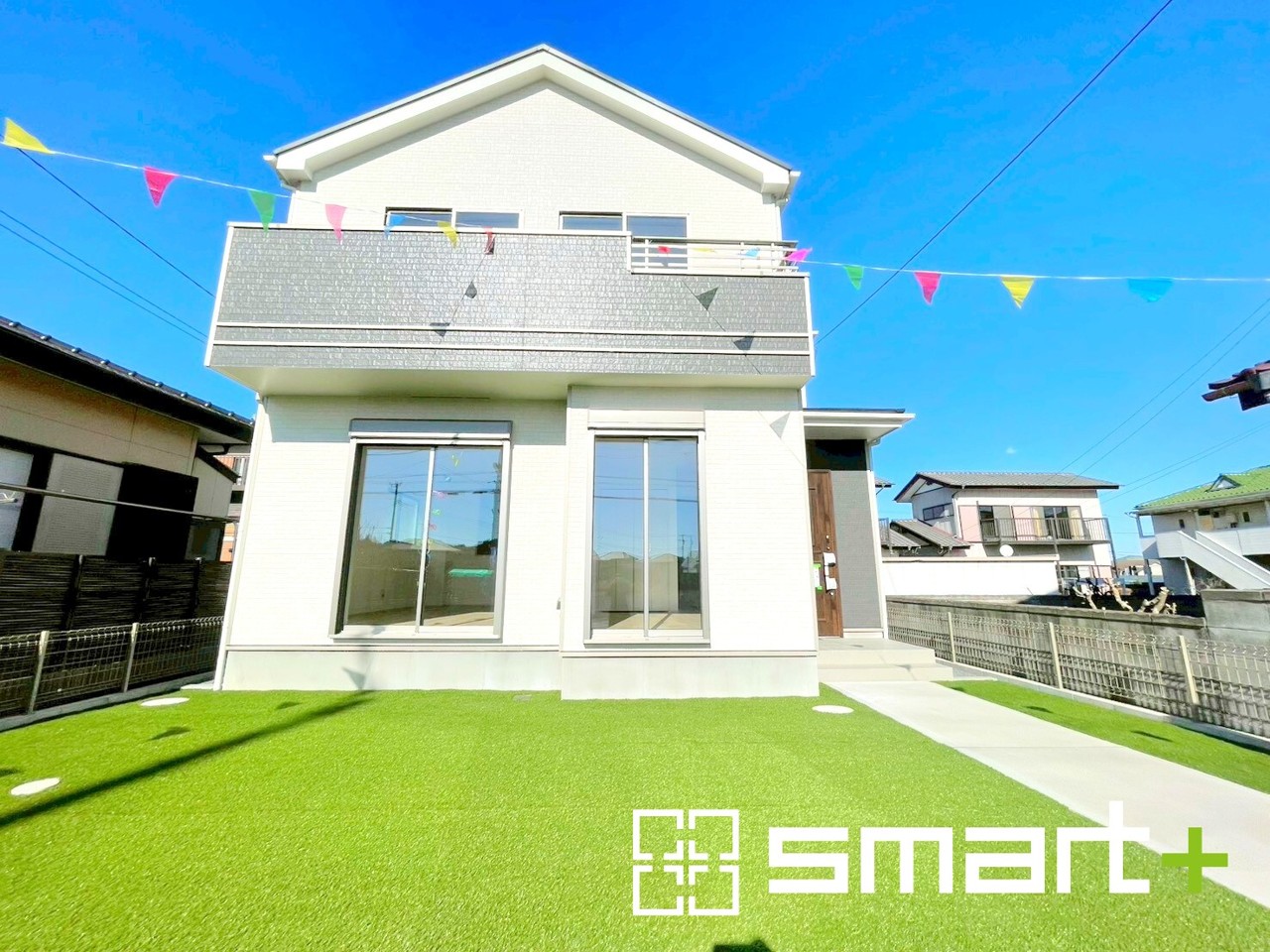 ~人工芝のある綺麗なお庭~ ・標準で人工芝を敷設しておりますので、見た目にも綺麗なお庭となっております。 ・人工芝の場合雑草が生えてこず、管理が楽なのも嬉しいポイントです。