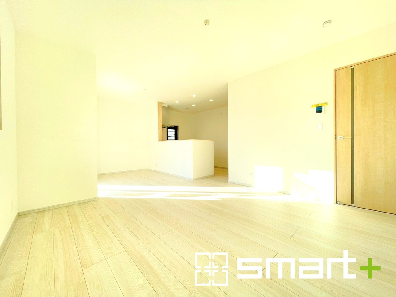 1号棟 ~穏やかな陽の入るLDK~ ・大きな窓のあるLDKは陽当りも良好で明るい空間となっております。 ・ご家族団らんなど過ごす時間の多いLDKが明るいのは嬉しいポイントですね。