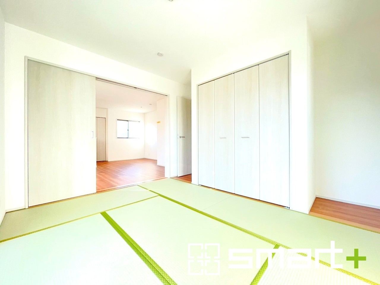 ~リビング横の和室~ ・リビング横には開放感をプラスしてくれる和室。収納スペース付きで寝室にもお使いいただけます。 ・玄関からも直接出入り可能なのでゲストルームにも利用できますね。 (1号棟)
