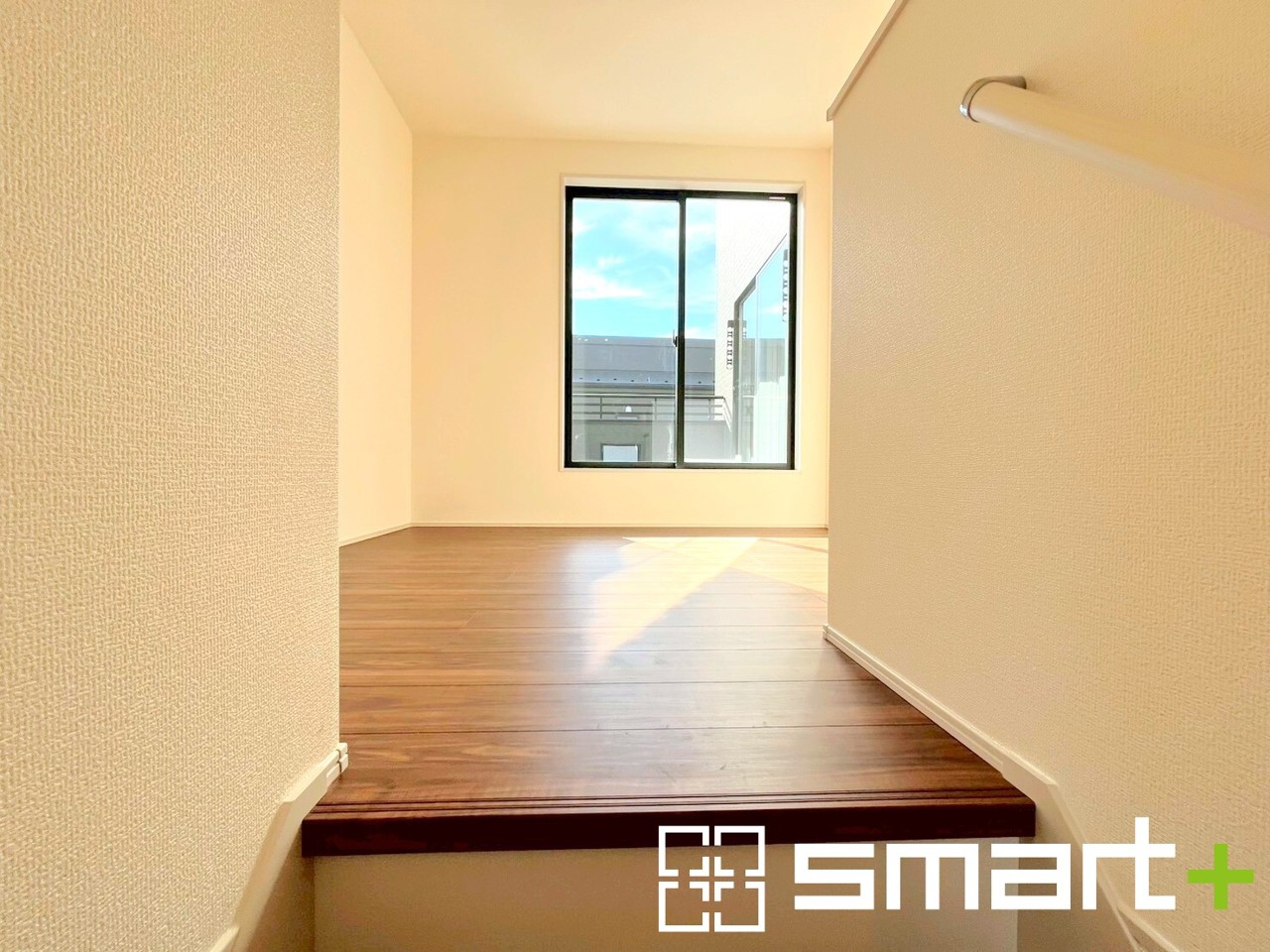 ~階段上ホール~ ・居室を通らずにバルコニーへの出入り可能なので、毎日のお洗濯もラクラク快適。 ・日当たりもよいので室内物干しにも最適です。