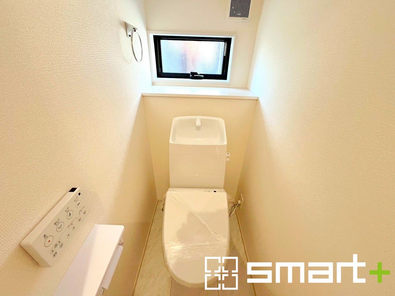 ~小窓付きの明るいトイレ~ ・使用後や掃除の際には新鮮な空気を取り込み換気ができます。 ・背面のスペースにちょっとした棚を設置すれば、トイレットペーパーのストックなども置けますね。