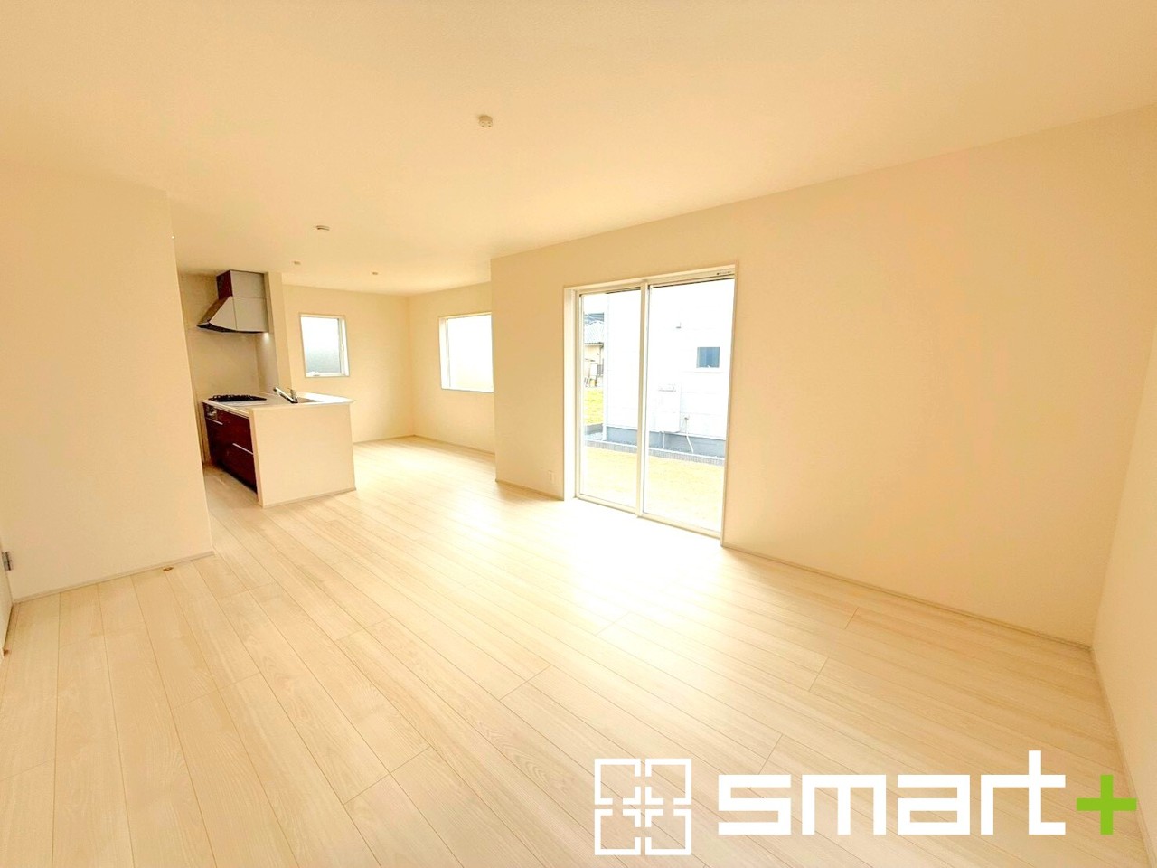 ~日当り良好のLDK~ ・たくさんの窓からたっぷりの陽光が差し込む明るいリビングで寛ぎのひと時を。 ・柔らかみのあるナチュラルカラーで、家具やカーテンの色も選びやすいですね。