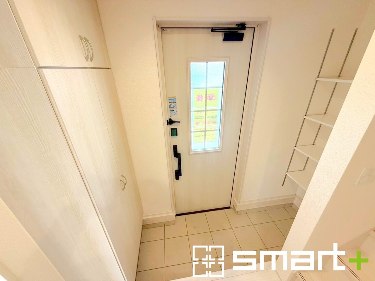 ~シューズインクロークのある玄関~ ・玄関にはシューズインクローク完備。ベビーカーやゴルフバッグ、お子様のスポーツ用品などたくさん収納できます。 ・便利な稼働式の棚付きが嬉しいですね。 (4号棟)