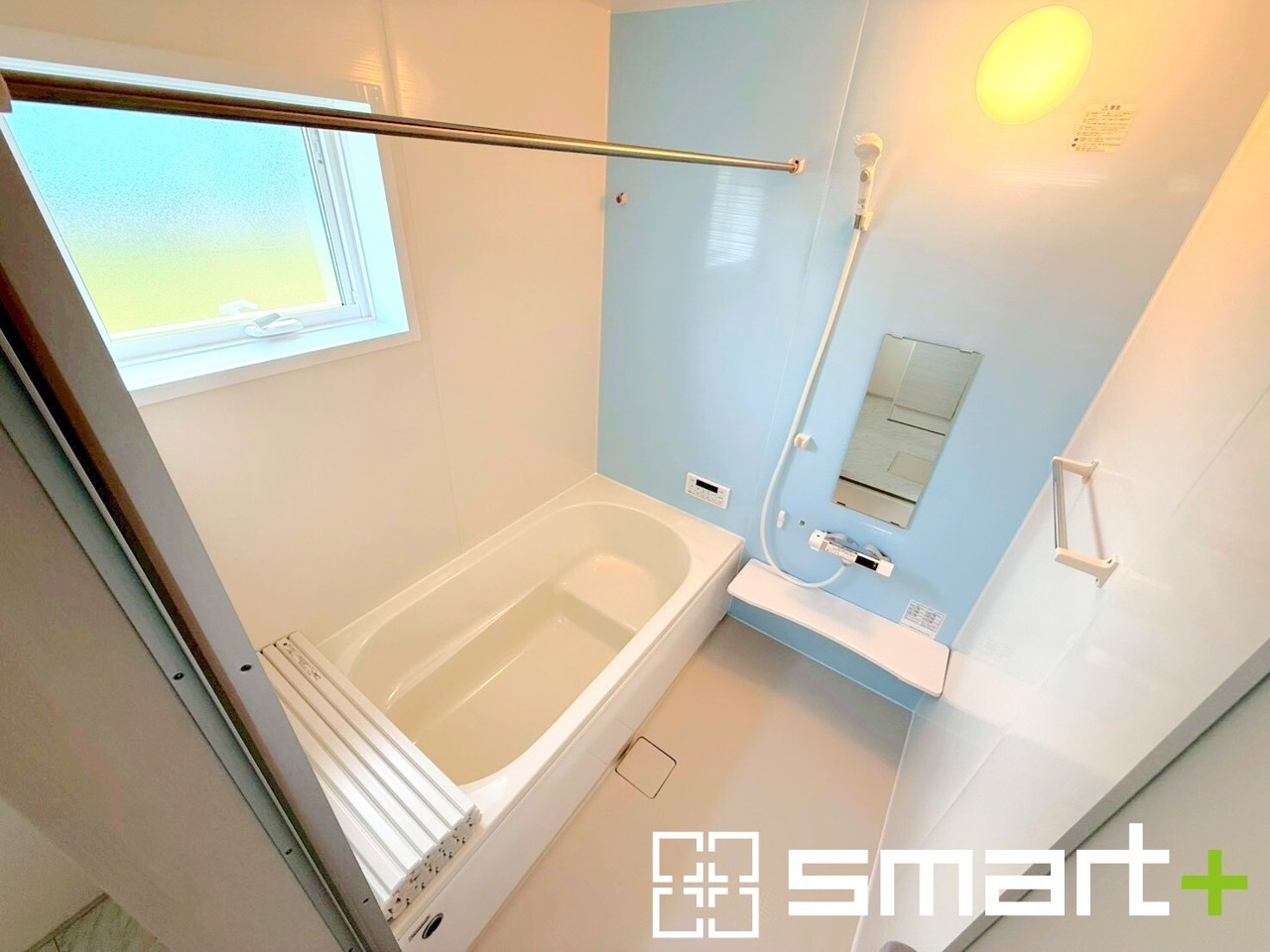 ~浴室乾燥機付きの浴室~ ・浴室には乾燥機が付いているので雨の日でも洗濯物を干すことが可能です。 ・水はけの良い床材など機能面も充実。マイクロバルなどオプションもご相談くださいませ。 (4号棟)