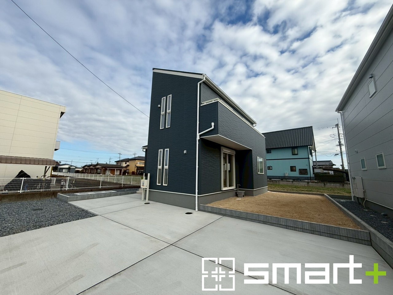 ~モダンな印象の外観~ ・木目調の外壁アクセントは幅広いテイストにマッチし、住まいに温かみを与えてくれる人気のデザイン。 ・見た目に重厚感が生まれ、高級感のある仕様となっております。 (4号棟)