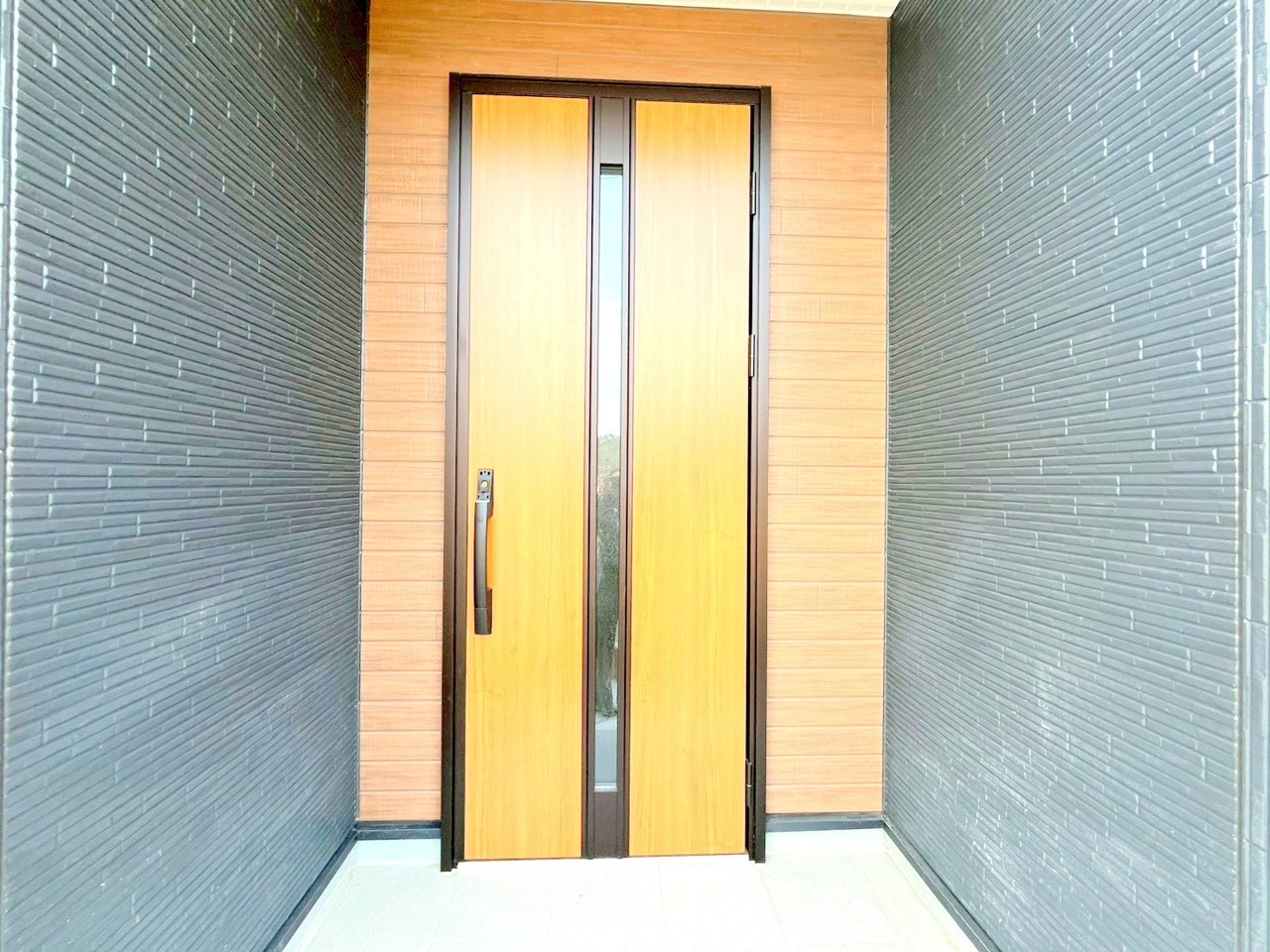 ~デザイン性に優れた玄関~ ・モダンなデザインの玄関ドアを採用する事でお住まいの「顔」の印象が大きく変わります。 ・毎日帰宅した際に嬉しくなる仕様です。