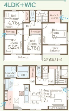 | 間取 | 4LDK (LDK17帖、洋室7帖、洋室5.25帖、洋室4.75帖、洋室4.75帖) | ||
