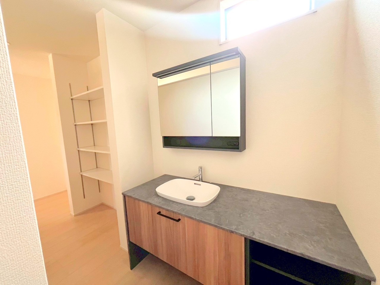 ~収納も充実の洗面所~ ・洗面所にはリネンスペースを設ける事でタオルや洗剤などの置場にも困りません。 ・意外とリネンスペースがある物件は少ないので、ぜひ現地でその魅力をご確認ください。