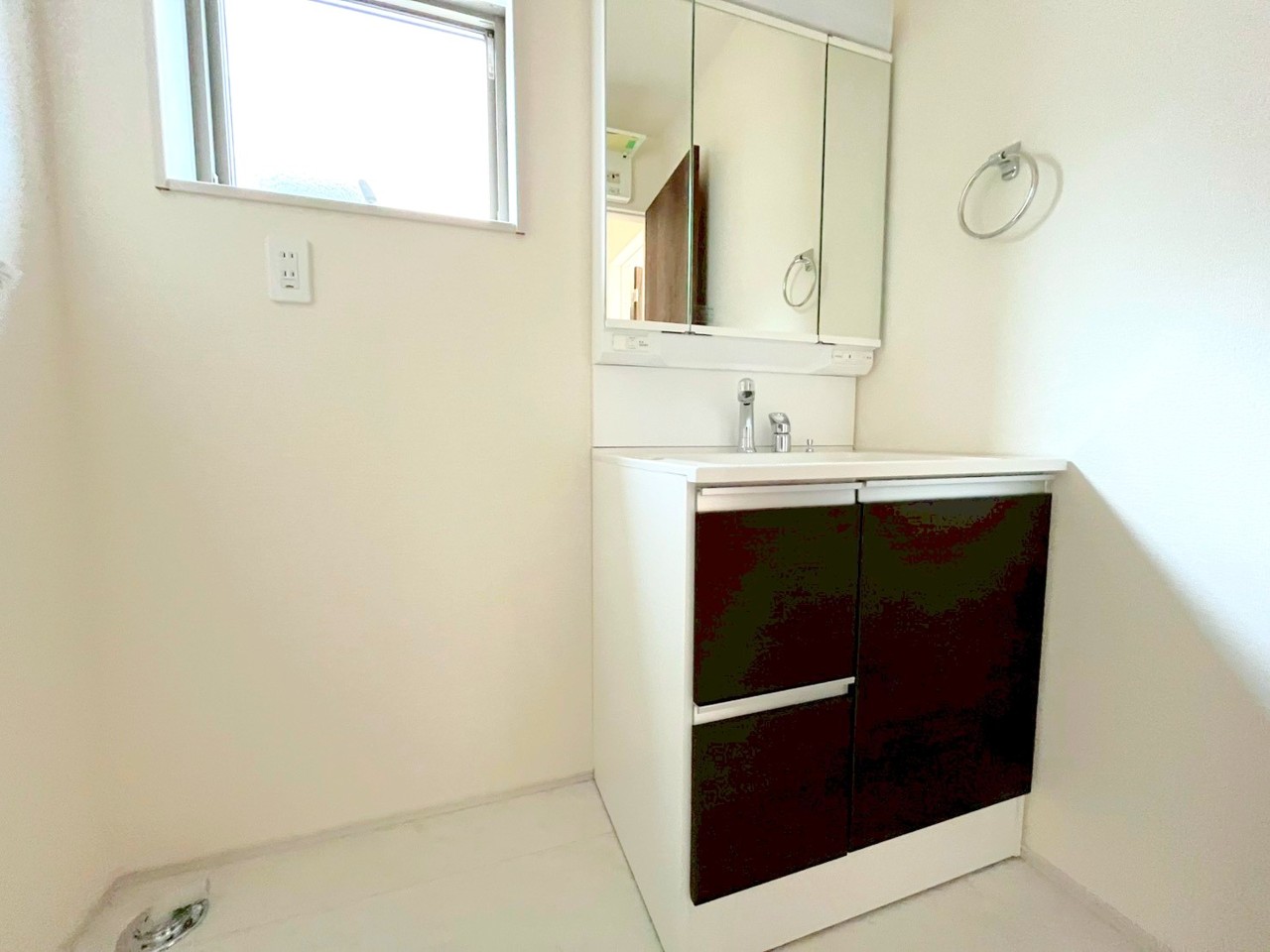 ~人気の三面鏡を採用~ ・洗面台は三面鏡仕様なので鏡の角度を変える事で頭の後ろの方までご確認可能です。 ・鏡の裏が収納になっておりますので、洗面台周りもスッキリと片付きます。