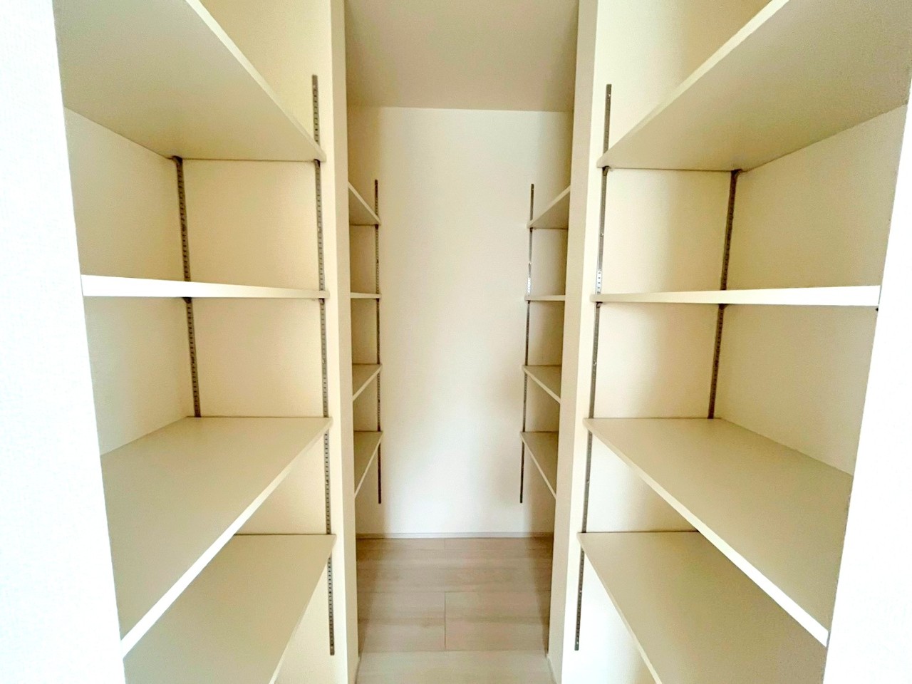 2号棟 ~パントリーのあるお住まい~ ・キッチン横にパントリー(食糧庫)をご用意。買い溜めした食材などはもちろん、ティッシュなどの置場としてもご利用いただけます。 ・ぜひ現地でご確認くださいませ。