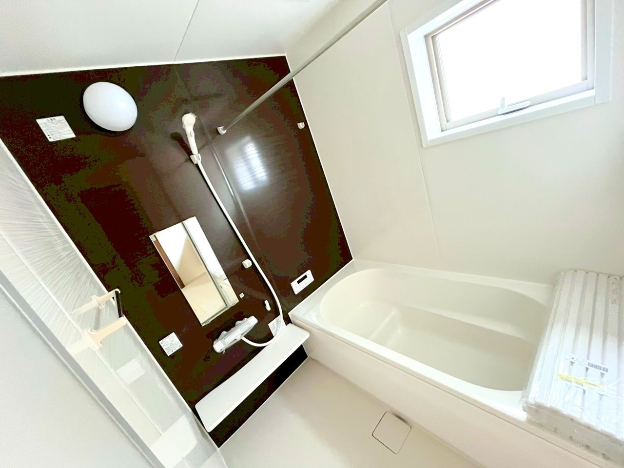 2号棟 ~暖房乾燥機付きの浴室~ ・ヒートショック対策にもなる浴室暖房を標準装備。冬場でも暖かくしてからご入浴が可能です。 ・もちろん乾燥機も付いておりますので、雨の日でも洗濯物を干せますよ。