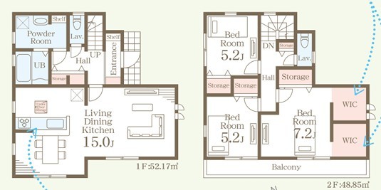 | 間取 | 3LDK (LDK15帖、洋室7.2帖、洋室5.2帖、洋室5.2帖) | ||
