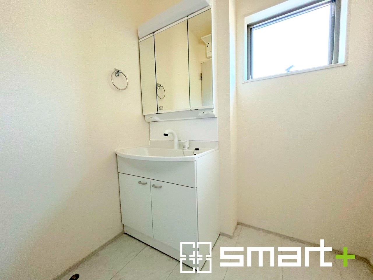~明るい洗面スペース~ ・窓から明るい陽が入り、気持ちよく朝の支度ができますね。 ・使い勝手の良い三面鏡タイプのシャワー付き洗面化粧台。鏡の裏に収納があるので洗面台周りもスッキリ。