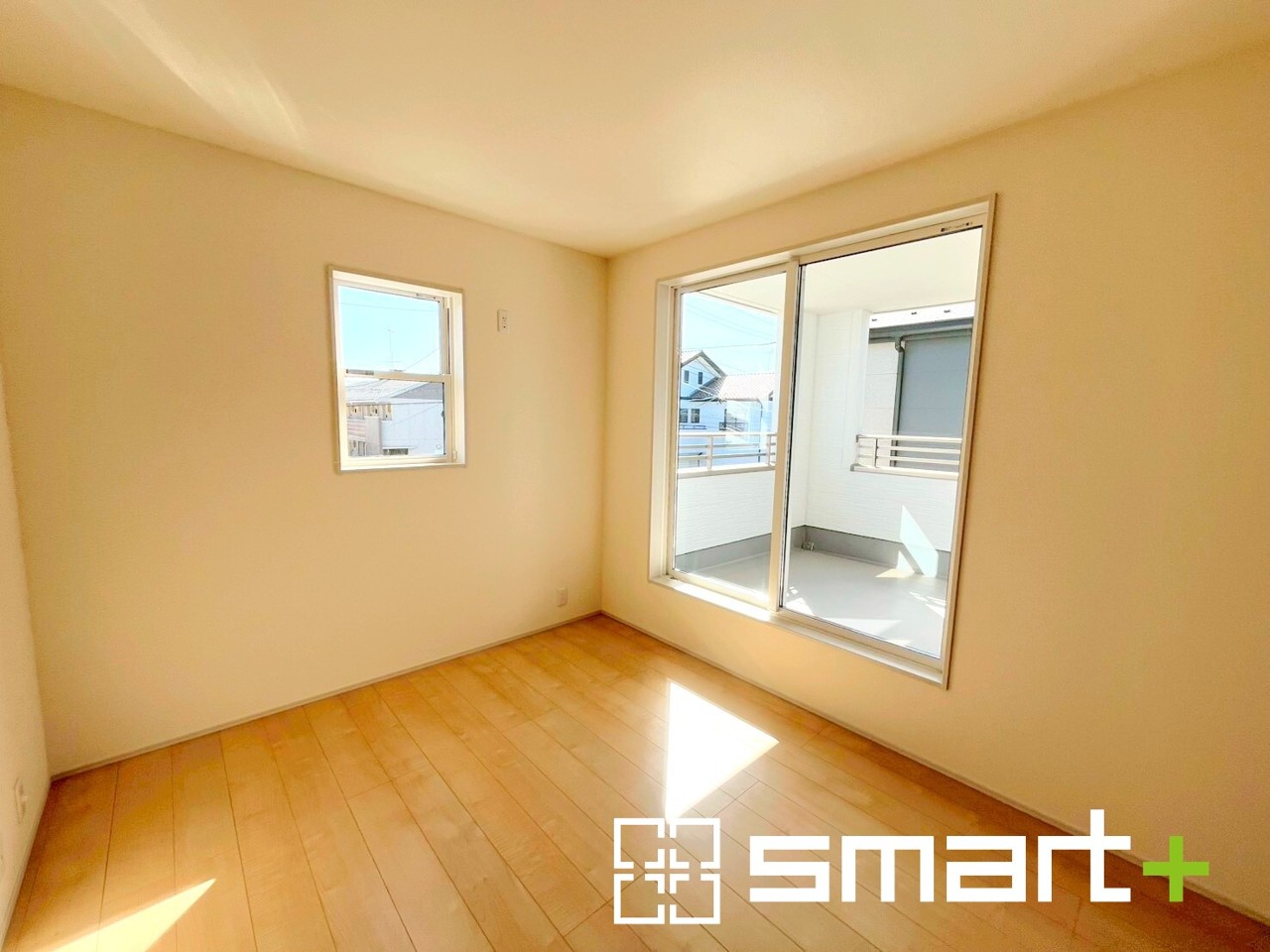 2号棟 ~バルコニーに面した洋室~ ・バルコニー側の大きな窓から穏やかな陽が差し込む明るい洋室はウォークインクローゼット付。 ・ゆとりある広さでご夫婦やご兄弟でもゆったりお過ごしいただけます。