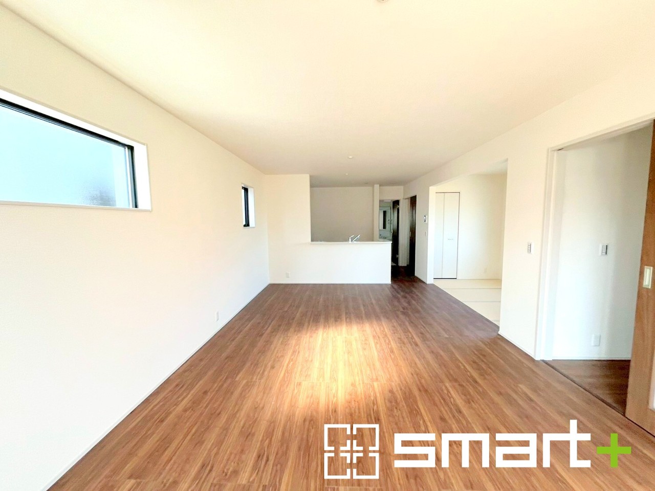 2号棟 ~穏やかな陽の入るLDK~ ・大きな窓のあるLDKは陽当りも良好で明るい空間となっております。 ・ご家族団らんなど過ごす時間の多いLDKが明るいのは嬉しいポイントですね。