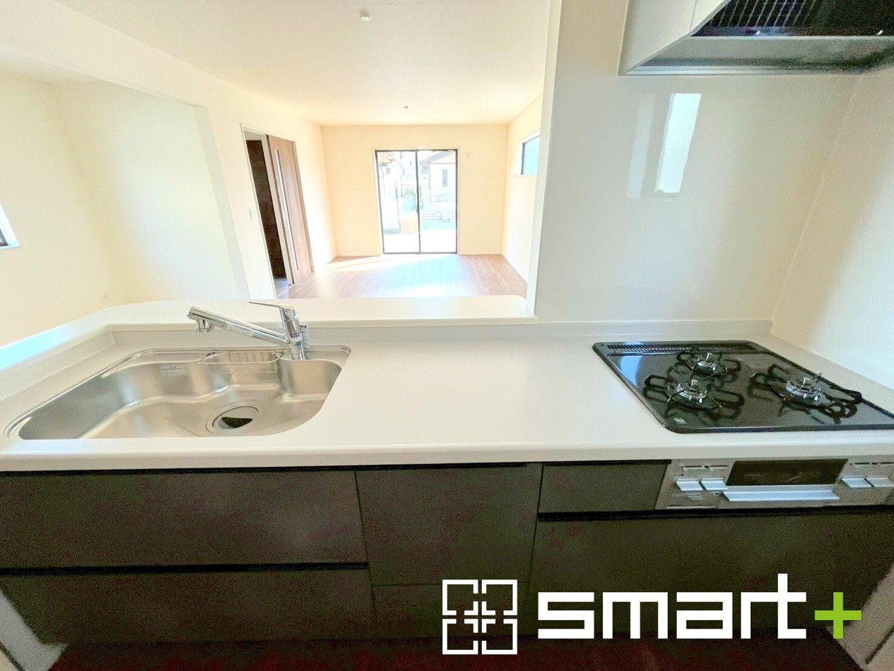 3号棟 ~人気のカウンターキッチン~ ・キッチンには余計な柱が無いので、リビングが見渡せ開放感のある造りとなっております。 ・蛇口には浄水器が内蔵されるなど機能面でも優れたキッチンです。