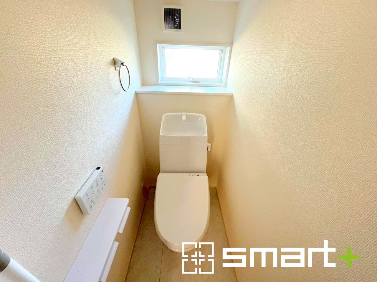3号棟 ~小窓付きの明るいトイレ~ ・使用後や掃除の際には新鮮な空気を取り込み換気ができます。 ・背面のスペースにちょっとした棚を設置すれば、トイレットペーパーのストックなども置けますね。