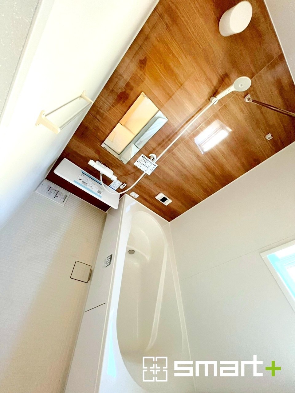 2号棟 ~浴室乾燥機付きの浴室~ ・浴室には乾燥機が付いているので雨の日でも洗濯物を干すことが可能です。 ・水はけの良い床材など機能面も充実。マイクロバルなどオプションもご相談くださいませ。