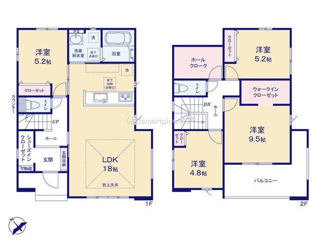 | 間取 | 4LDK + WIC、SIC、ホールクローク (LDK18帖、洋室9.5帖、洋室5.2帖、洋室5.2帖、洋室4.8帖) | ||
