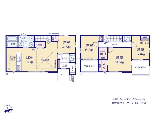 | 間取 | 4LDK + WIC、SIC、ホールクローク (LDK18帖、洋室9.5帖、洋室6.3帖、洋室5.4帖、洋室4.5帖) | ||