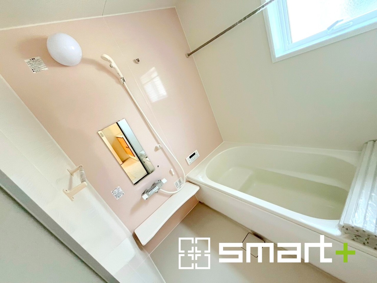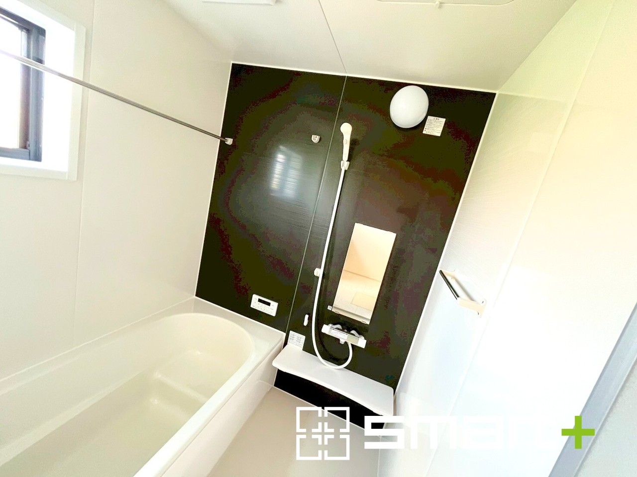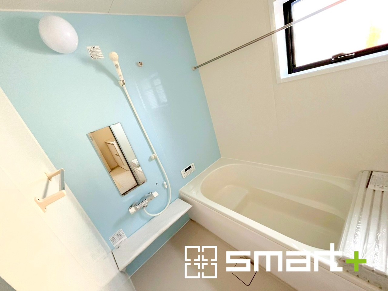 1号棟 ~浴室乾燥機付きの浴室~ ・浴室には乾燥機が付いているので雨の日でも洗濯物を干すことが可能です。 ・水はけの良い床材など機能面も充実。マイクロバルなどオプションもご相談くださいませ。