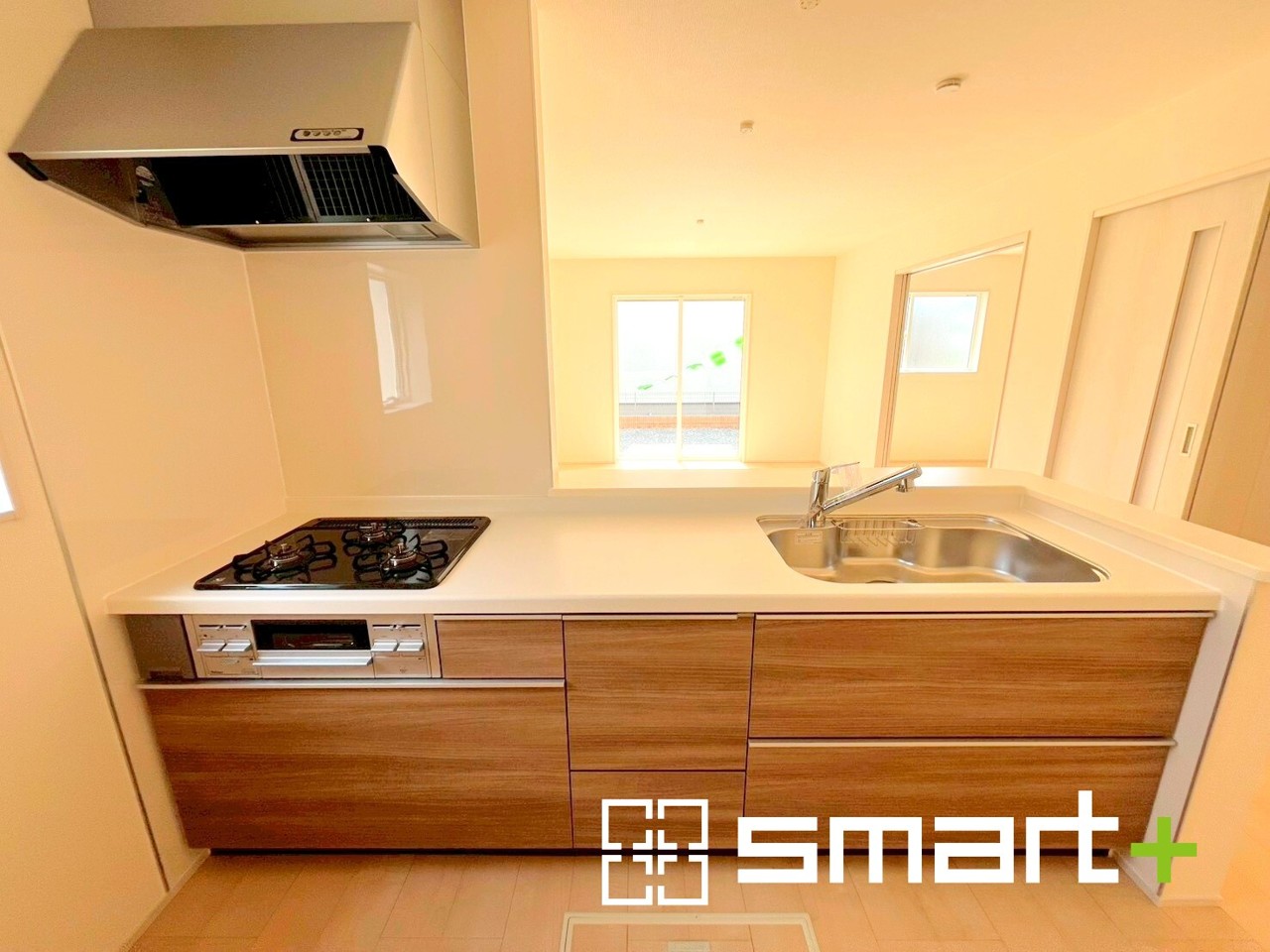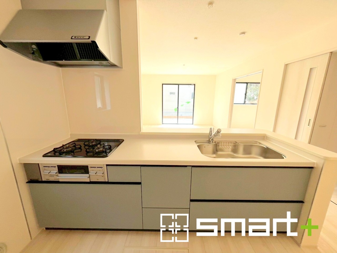 3号棟 ~人気のカウンターキッチン~ ・キッチンには余計な柱が無いので、リビングが見渡せ開放感のある造りとなっております。 ・蛇口には浄水器が内蔵されるなど機能面でも優れたキッチンです。