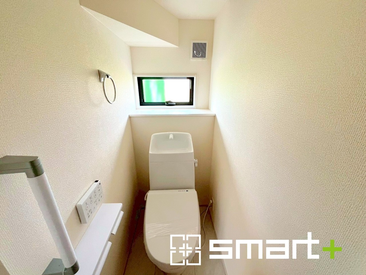 ~小窓付きの明るいトイレ~ ・使用後や掃除の際には新鮮な空気を取り込み換気ができます。 ・背面のスペースにちょっとした棚を設置すれば、トイレットペーパーのストックなども置けますね。 (1号棟)