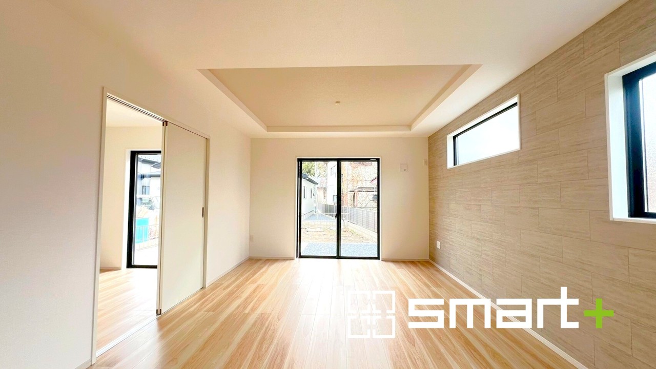 ~折り上げ天井のあるLDK~ ・一部天井を高くする折り上げ天井を配する事で縦への空間が生まれ、開放感のある広々とした仕様に。 ・ぜひ現地でその魅力をご体感くださいませ。