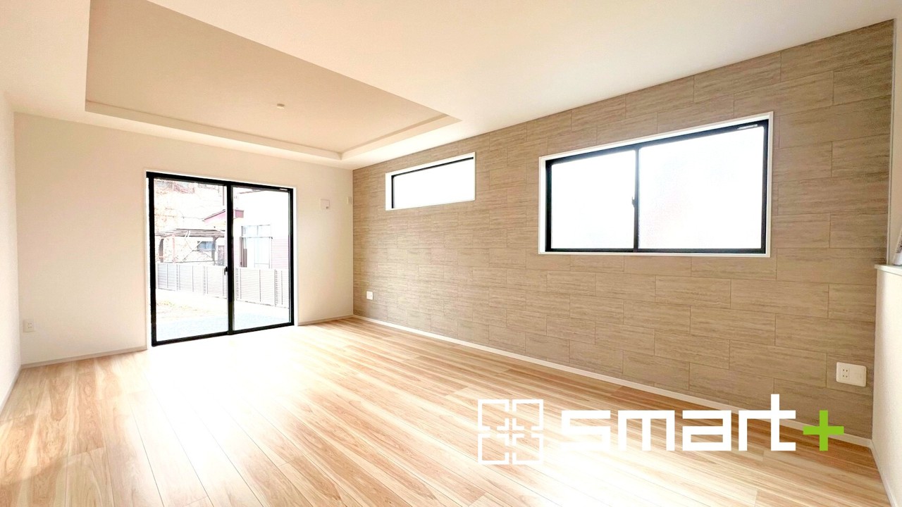 ~日当り良好のLDK~ ・たくさんの窓からたっぷりの陽光が差し込む明るいリビングで寛ぎのひと時を。 ・柔らかみのあるナチュラルカラーで、家具やカーテンの色も選びやすいですね。