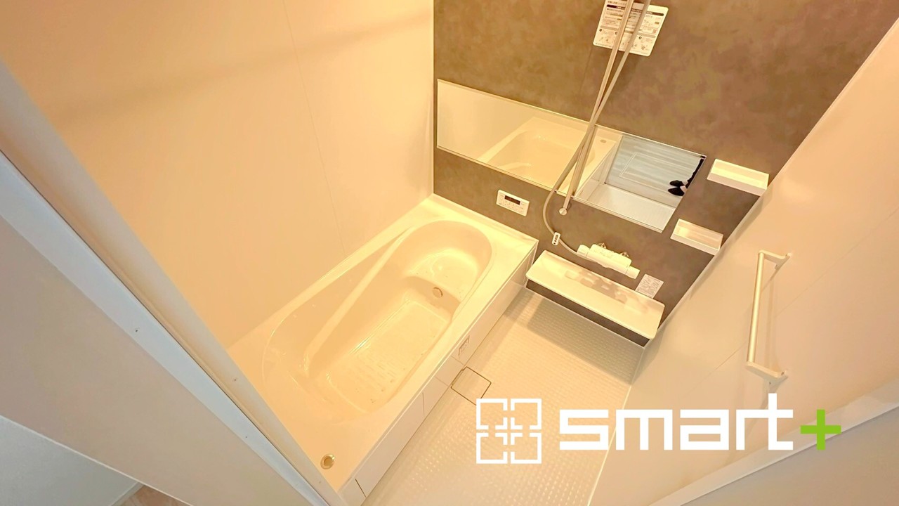 ~浴室乾燥機付きの浴室~ ・浴室には乾燥機が付いているので雨の日でも洗濯物を干すことが可能です。 ・水はけの良い床材など機能面も充実。マイクロバルなどオプションもご相談くださいませ。
