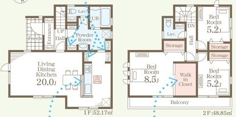 | 間取 | 3LDK + WIC (LDK20帖、洋室8.5帖、洋室5.2帖、洋室5.2帖) | ||