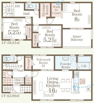 | 間取 | 3SLDK + WIC、SIC (LDK16帖、洋室8帖、洋室5.25帖、洋室5.25帖、S3帖) | ||