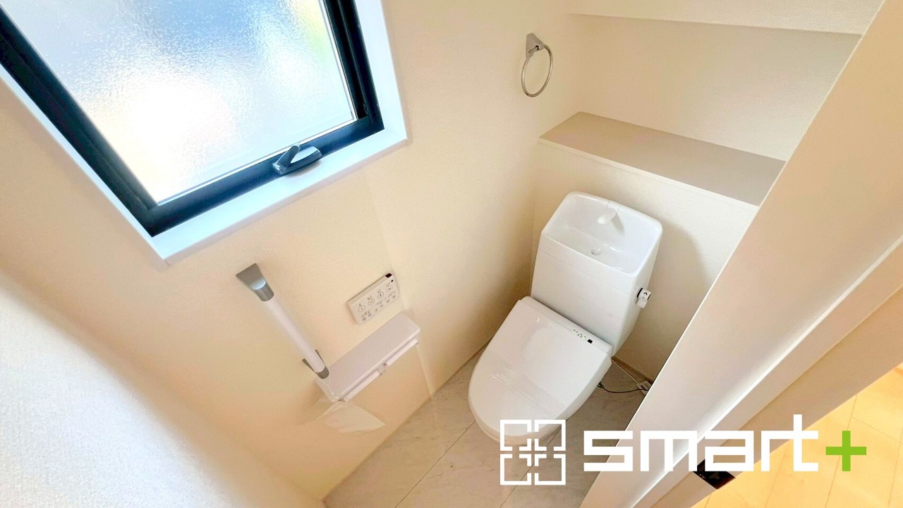 1号棟 ~小窓付きの明るいトイレ~ ・使用後や掃除の際には新鮮な空気を取り込み換気ができます。 ・背面のスペースにちょっとした棚を設置すれば、トイレットペーパーのストックなども置けますね。 2026/04/07m