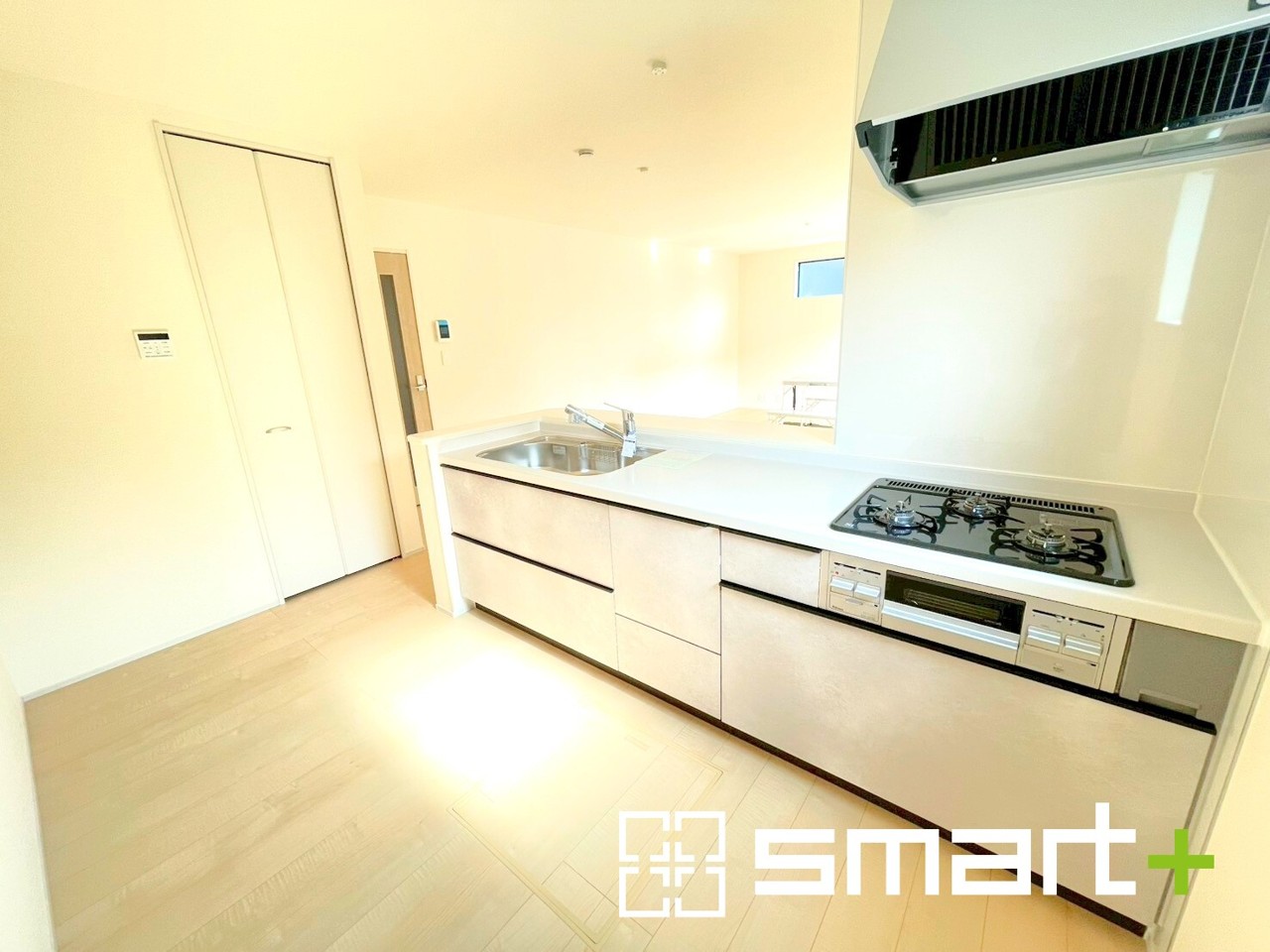 1号棟 ~人気のカウンターキッチン~ ・キッチンには余計な柱が無いので、リビングが見渡せ開放感のある造りとなっております。 ・蛇口には浄水器が内蔵されるなど機能面でも優れたキッチンです。 2026/04/07m