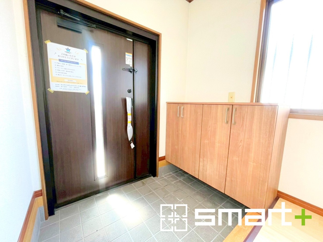 ~穏やかな陽の入る玄関~ ・玄関ドアのガラス部分に加えてシューズボックスの上に窓を設ける事で穏やかな陽の入る玄関に。 ・ご家族やご来客を明るい空間で出迎えてくれます。