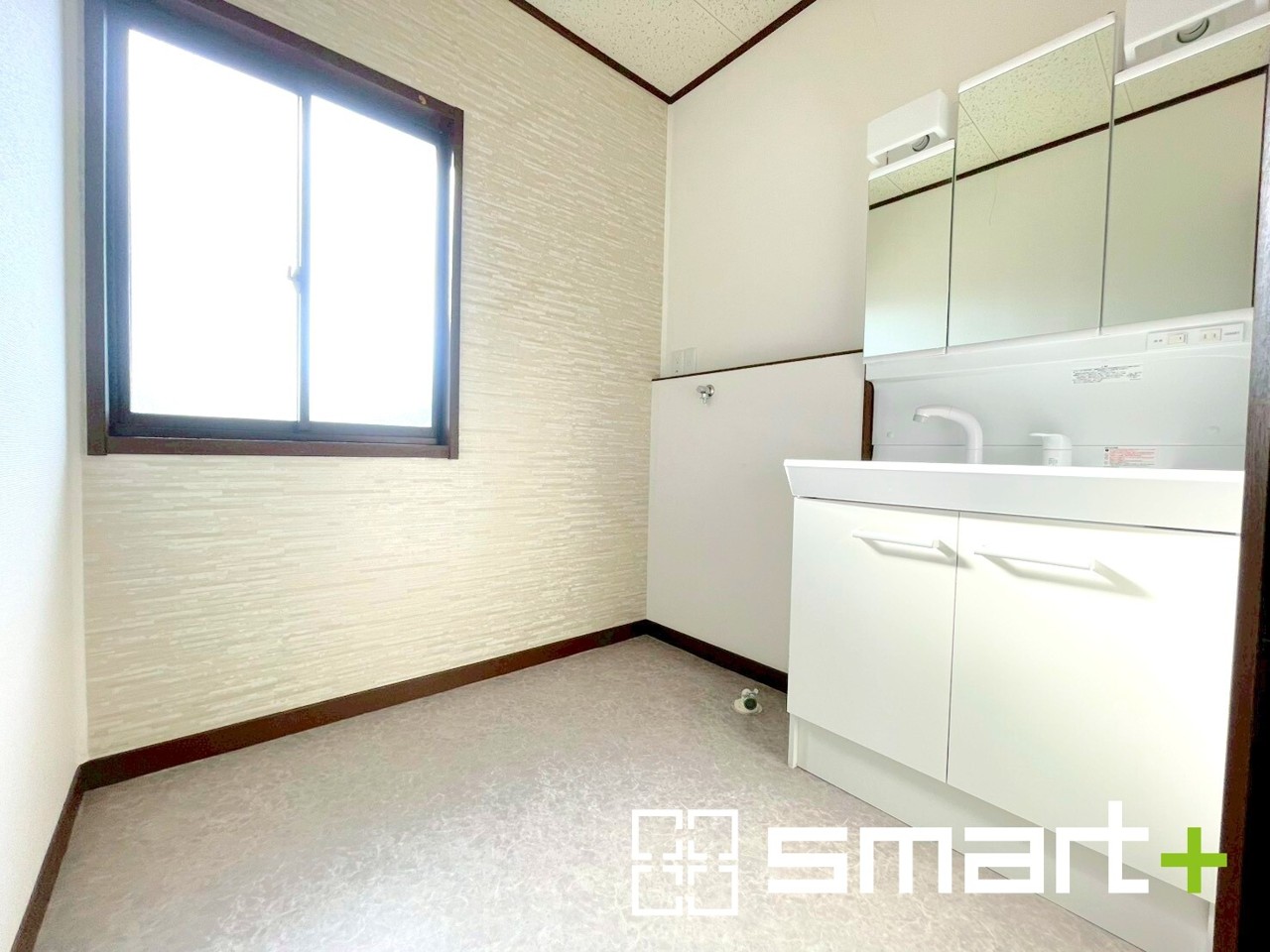 ~人気の三面鏡を採用~ ・洗面台は三面鏡仕様なので鏡の角度を変える事で頭の後ろの方までご確認可能です。 ・鏡の裏が収納になっておりますので、洗面台周りもスッキリと片付きます。