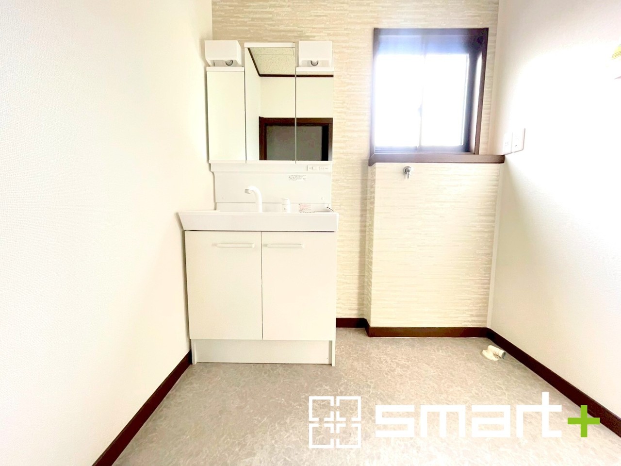 ~2階の人洗面所~ ・洗面台は三面鏡仕様なので鏡の角度を変える事で頭の後ろの方までご確認可能です。 ・鏡の裏が収納になっておりますので、洗面台周りもスッキリと片付きます。