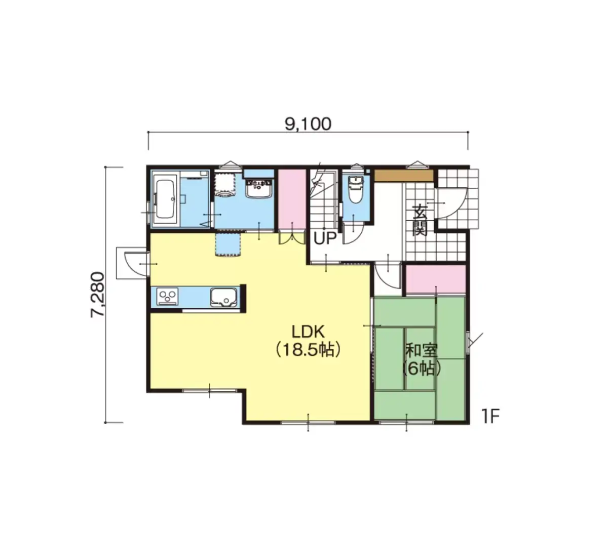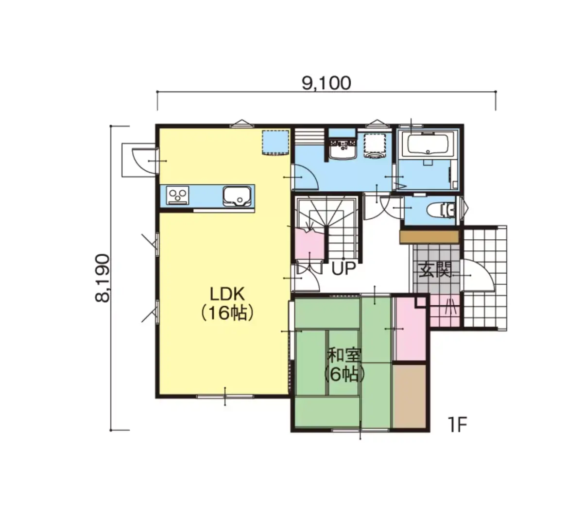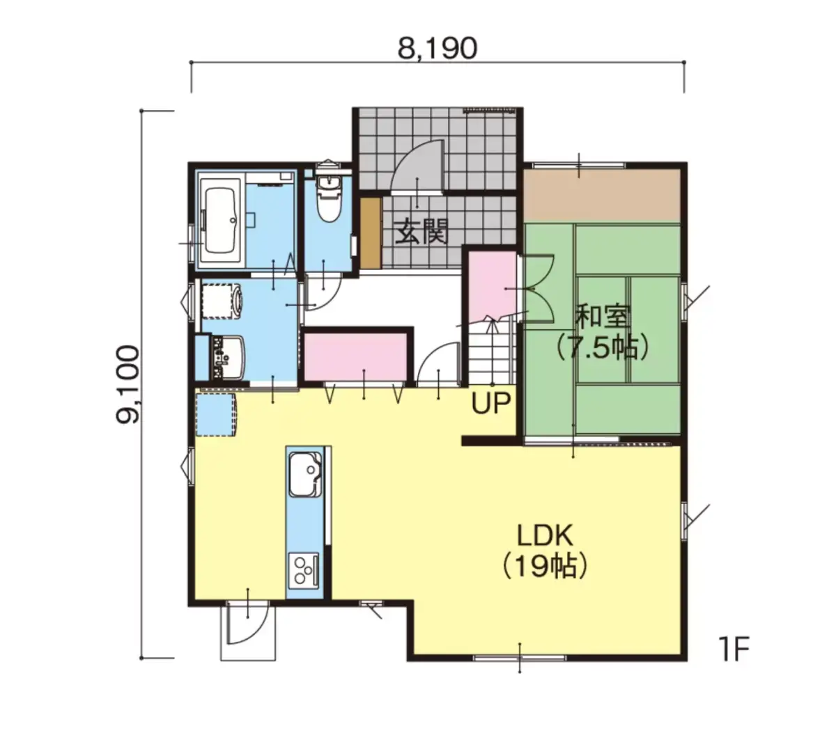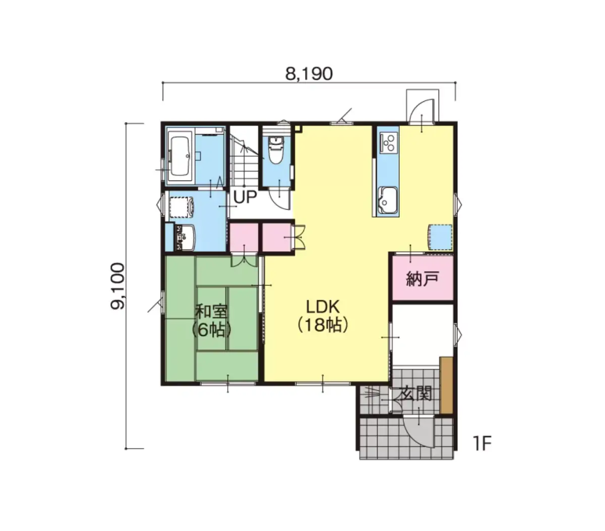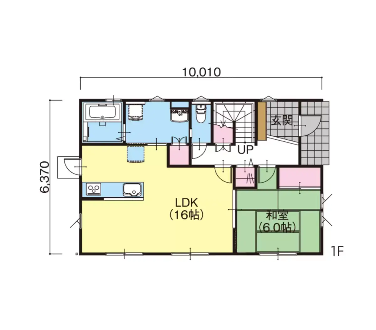 広々とした玄関を配置したプラン。大きなLDKと6帖の和室が家族を温かく包み込みます。
