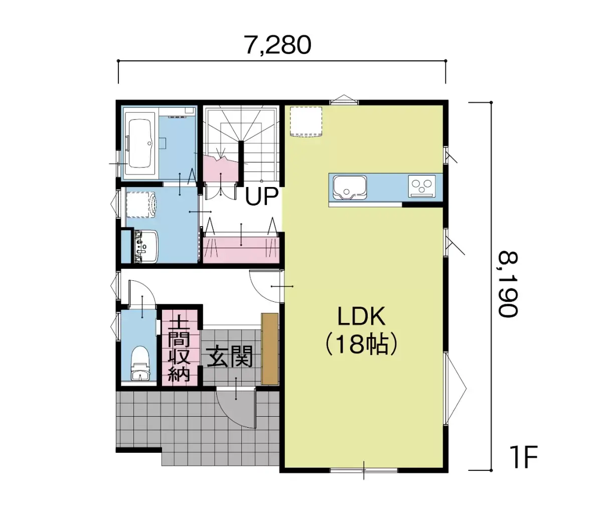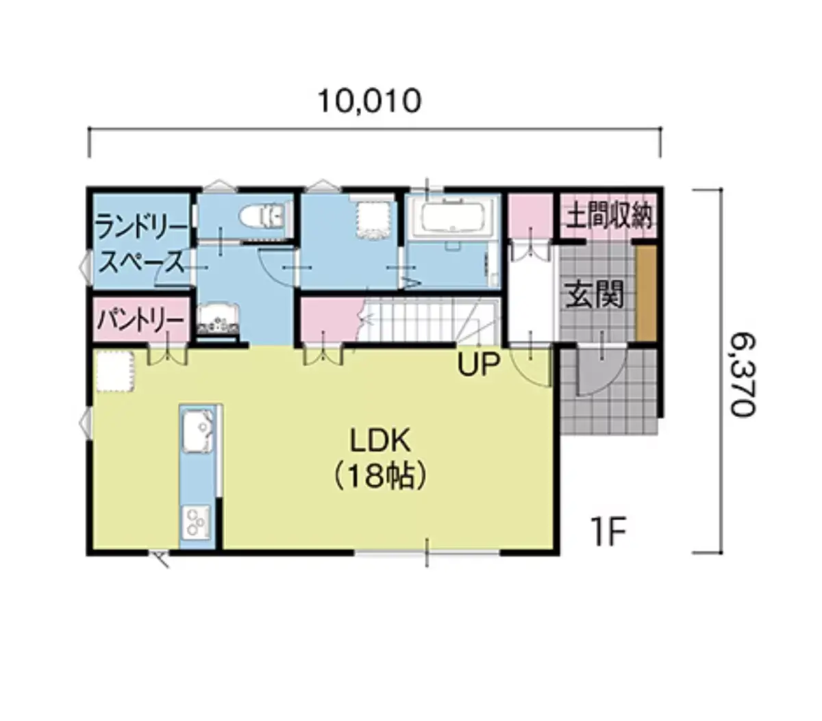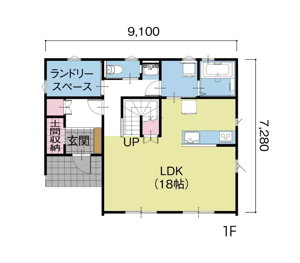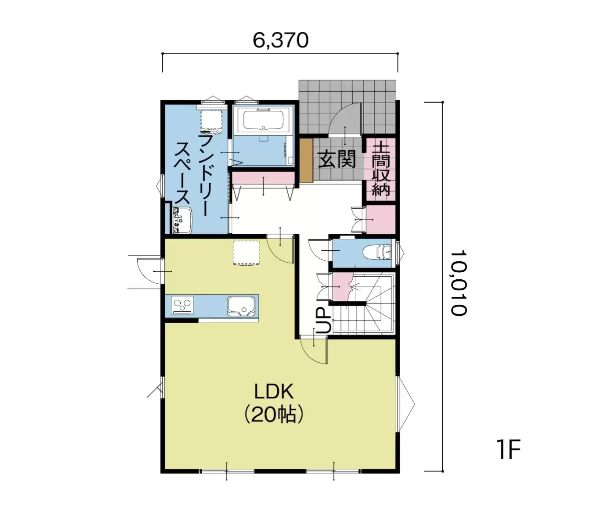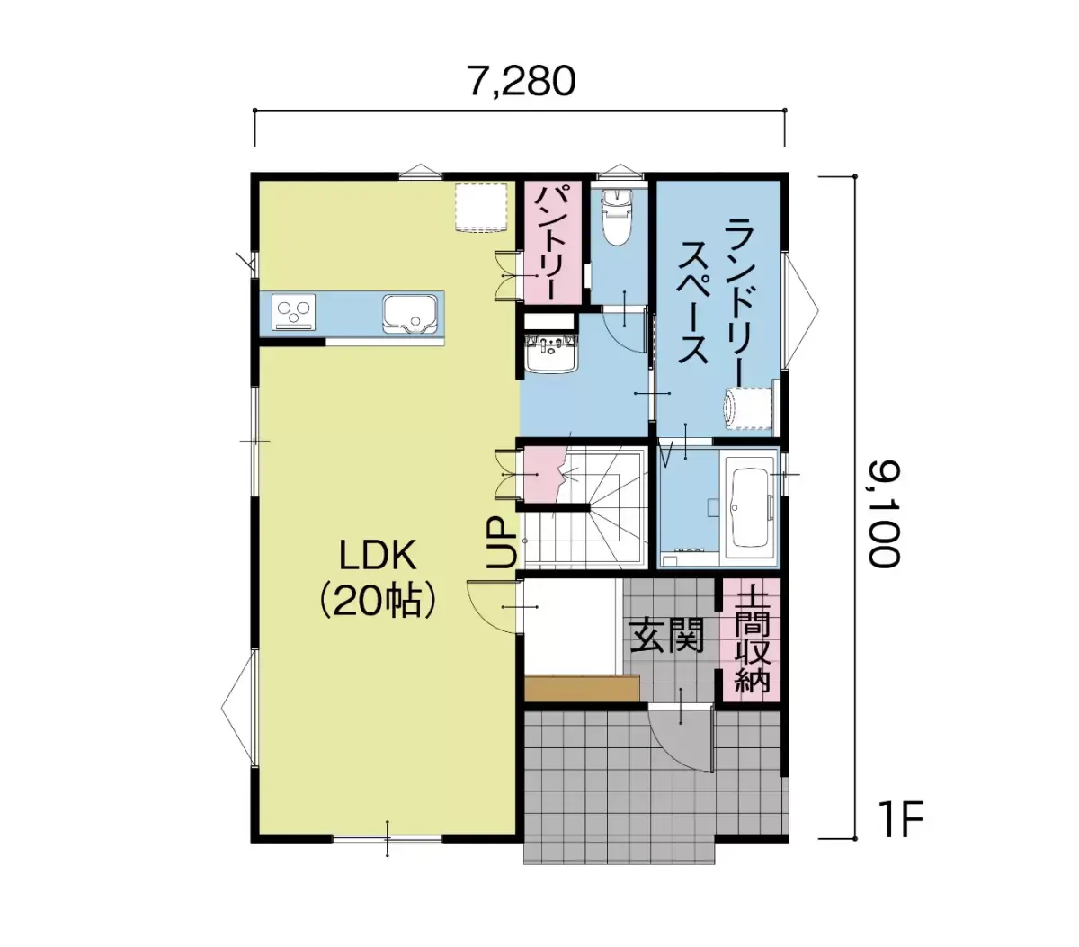20帖のリビングにパントリーも完備。ランドリールームにWICも魅力のプラン。